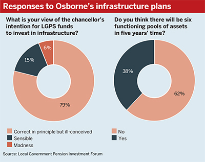 Nearly eight in 10 delegates (79 per cent) deemed the chancellor’s plans for infrastructure correct in principle but “simply ill conceived” while 62 per cent thought it unlikely Osborne’s vision for six functioning pools of assets would come to fruition within the next five years.